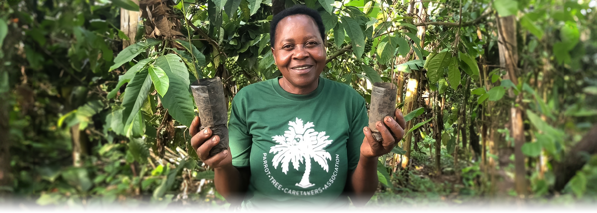The PTCA unites the local farmers who are growing and protecting feeding trees for grey parrots and other wildlife within the region, sharing the vision of a just world for humans and wildlife and the mission to be the leading caretakers and stewards of parrots in their natural environment.